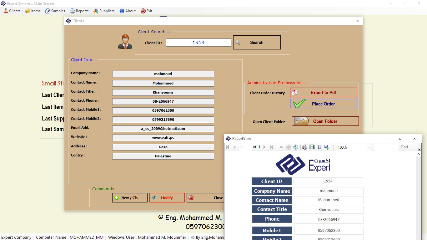 A program to manage the names of clients, samples and factories that are dealt with within the company, with complete management of the company's accounts